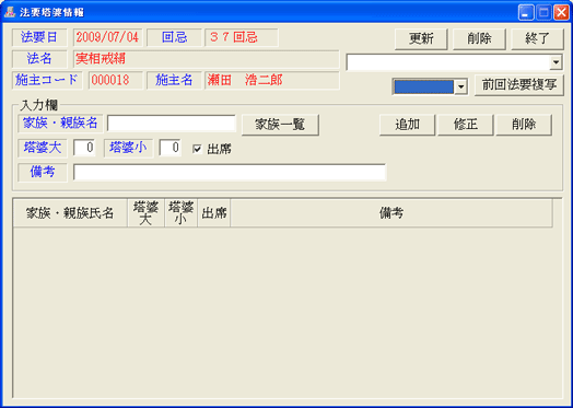 入力業務では、施主情報/家族情報/霊名情報を登録します。